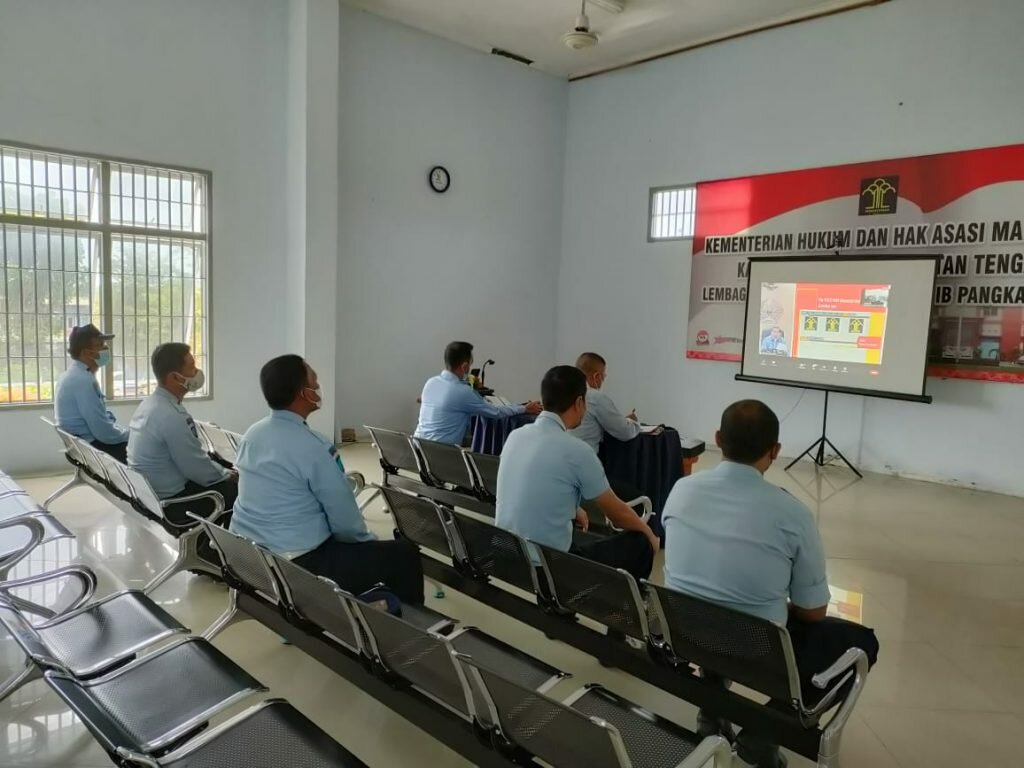 Pangkalan Bun – Kepala Lembaga Pemasyarakatan Kelas IIB Pangkalan Bun dan Tim Pengamat Pemasyarakat (TPP) kegiatan Evaluasi Pencabutan, Pemindahan Narapidana, dan Pemberian Hak Remisi, Asimilasi, Pembebasan Bersyarat, Cuti Menjelang Bebas, Cuti Bersyarat oleh Direktorat Jenderal Pemasyarakatan yang dilaksanakan secara Virtual. Kamis (04/11/2021).