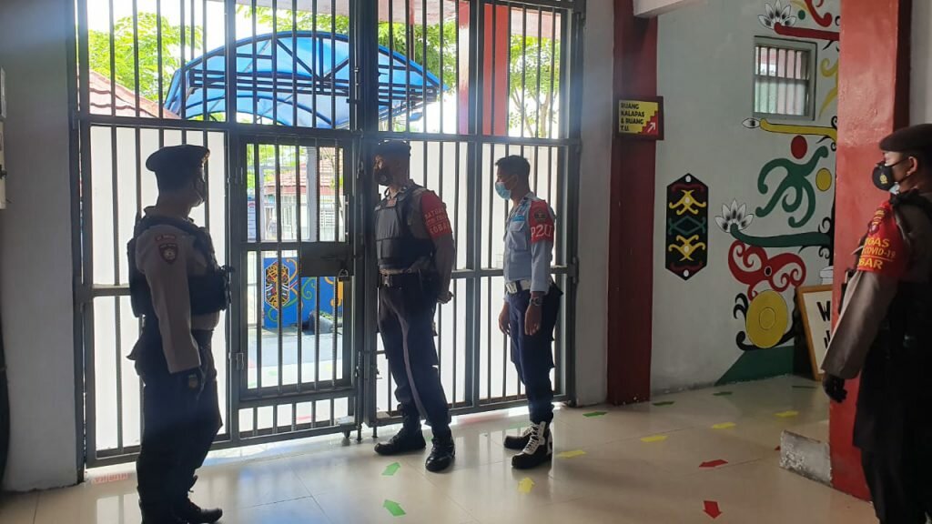 Pangkalan Bun – Anggota Kepolisian Resor Kotawaringin Barat melakukan Patroli Sambang ke Lembaga Pemasyarakatan Kelas IIB Pangkalan Bun. Kegiatan Patroli Sambang ini dilakukan untuk mencegah gangguan Keamanan dan ketertiban di Lapas. Selasa (02/11/2021).